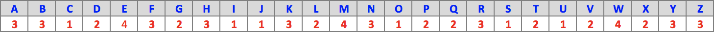 Voici les valeurs de chaque mouvement du doigt de KL pour construire les 26 chiffres :