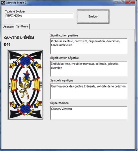 Voici comment se présente le logiciel du Glaive Alphanumérique du Tarot :
